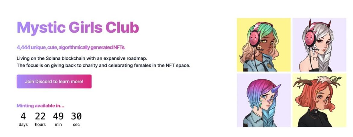 Press Release Mystic Girls Club: A Women-Led NFT Project With Utility Token, Unique Characters And Games by Mcguire November 23, 2021 written by Mcguire Mystic Girls Club, a women-led NFT project, is announcing its public mint … Continue Reading November 23, 2021 0 comment 0 FacebookTwitterPinterestEmail